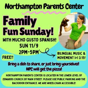 NPC's first Family Fun Sunday of the year is this Sunday, November 9, from 2:00 pm - 5:00 pm! Playtime, optional potluck dinner, arts and crafts, and music with special guests Mucho Gusto Spanish at … [Read more...]