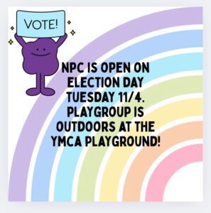 NPC is open tomorrow, Tuesday, November 4. Playgroup is outdoors at the Hampshire YMCA. See you soon! … [Read more...]