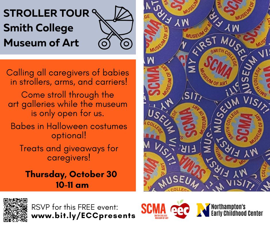 Smith College Museum of Art museum will open just for caregivers of babies (in strollers, arms, and/or carriers :)) – come stroll through the art galleries! Halloween costumes optional, treats and giveaways for caregivers. Sign up online. Smith College Museum of Art, 20 Elm St, Northampton, 01063.